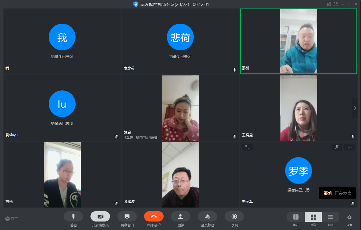 按照学校教务处下发的教务字〔2020〕17 号和研究生处下发的研学字[2020]10号文件关于疫情期间本科生、研究生课程在线教学工作的有关要求,管理与新闻传播学院先后于4月7日中午12:30分召开新学期线上教学工作部署会和4月10日上午10:00召开线上教学工作推进会,集体研究并组织落实各项工作。两次会议均以钉钉视频会议方式进行。会议由院长李芳主持,学院领导班子成员、各教研室主任、教学小组长(本科和研究生)、教学秘书、各年级辅导员以及在线教学工作领导小组成员等22人参加会议。