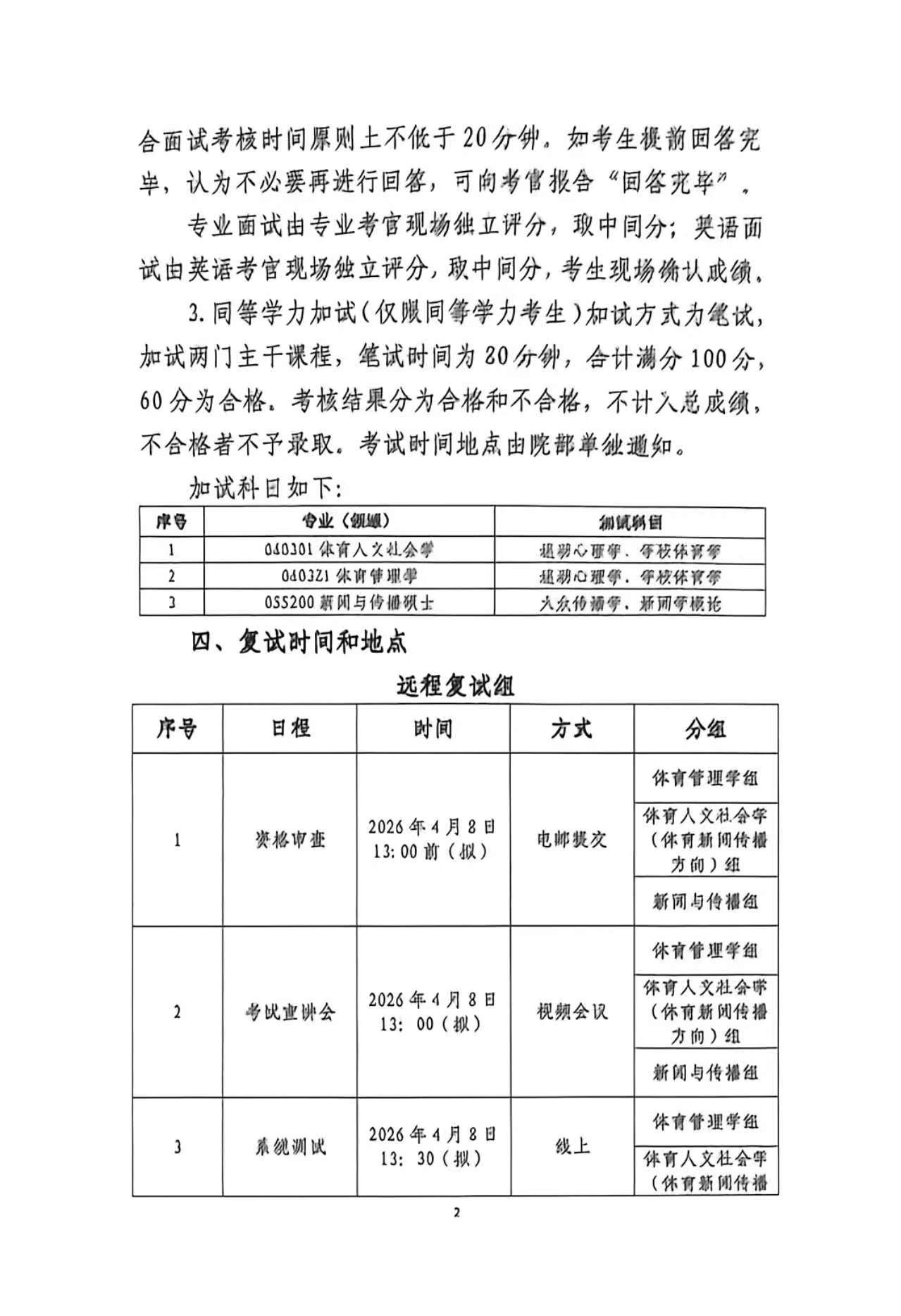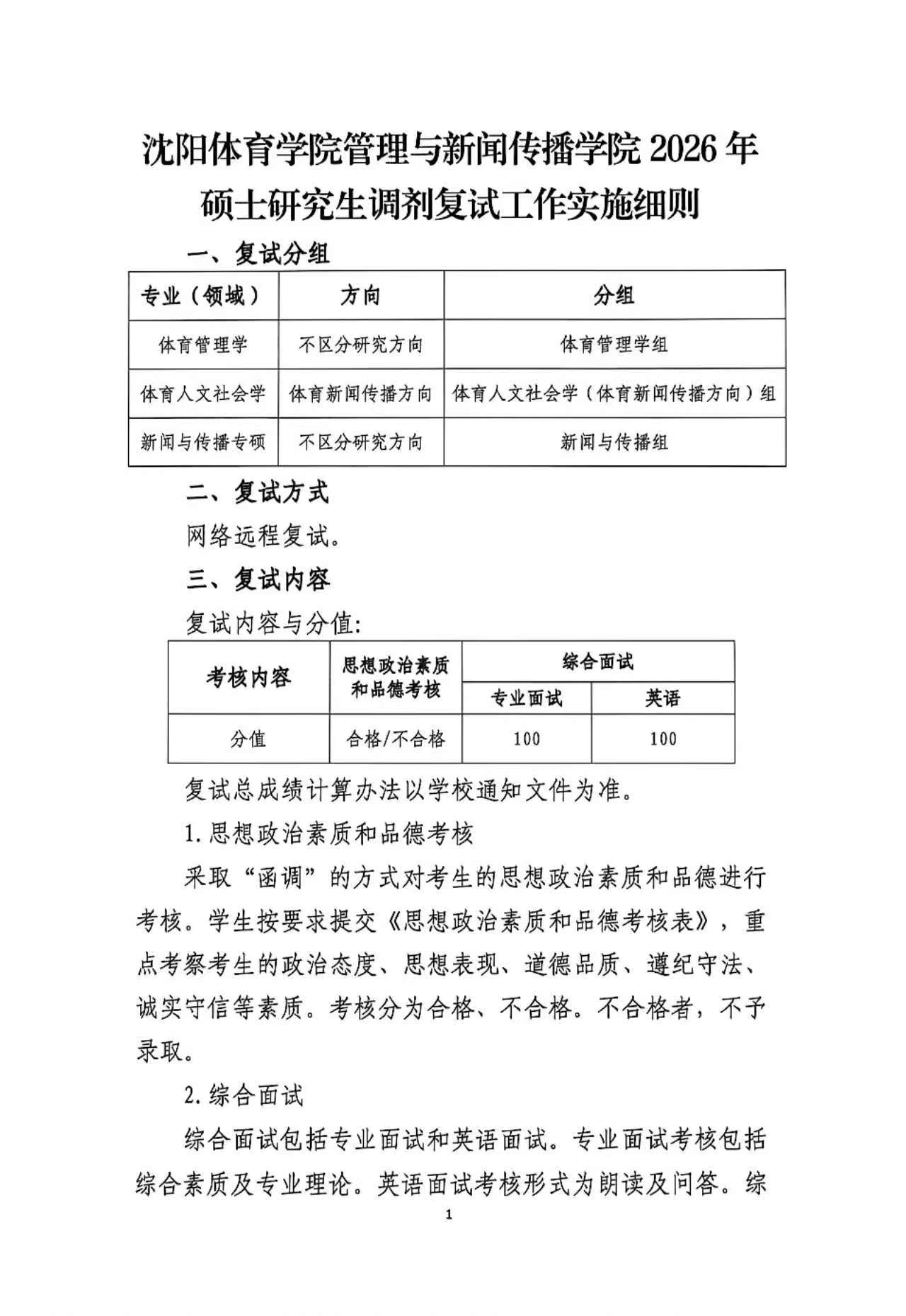 沈阳体育学院管理与新闻传播学院2026年硕士研究生调剂复试工作实施细则