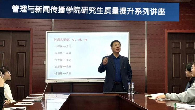 10月31日,管理与新闻传播学院邀请辽宁省教学名师程文广教授,在图书馆506会议室作题为“体育管理学专业如何开展论文文献综述”的主题讲座。本次讲座由副院长邵凯教授主持,学院2023、2024级各专业研究生参会。